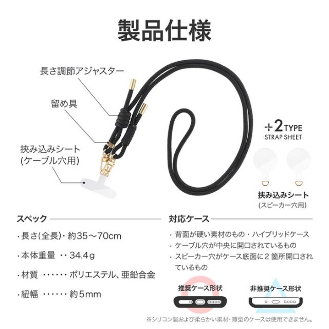 ショルダーストラップ ブラック 挟み込みシート 2WAY 肩掛け 首掛け iPhone Android スマホ