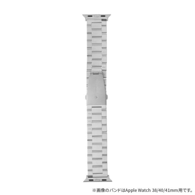 本体との一体感が魅力のメタル製Apple Watchバンド/毎日のつけ外しが簡単なプッシュ式バックル/ビジネスシーンにもマッチするシンプルデザイン/長さ調整器具つき