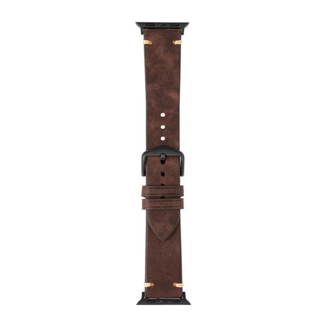 気品のある本革製Apple Watchバンド/馴染みのある穴留め式バックルで着脱しやすい/ハンドメイド感のあるヴィンテージ調ワックスレザーとステッチ