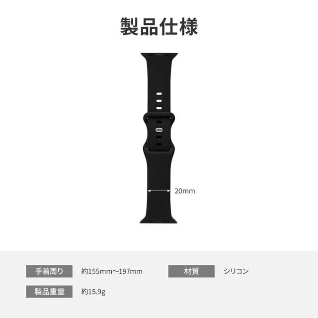 なめらかで肌触りの良い質感のApple Watchバンド/汗や水に強いシリコン製/ピン留め式で着脱しやすい/どんなシーンでも使いやすい定番のシリコンバンド