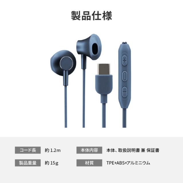 イヤホン 有線 TypeC 有線イヤホン インナーイヤー型 タイプC マイク付き 音量調節可能 リモコン コード付き 通話 電話 iPhone Android スマホ ブラック ホワイト ネイビー パープル ベージュ
