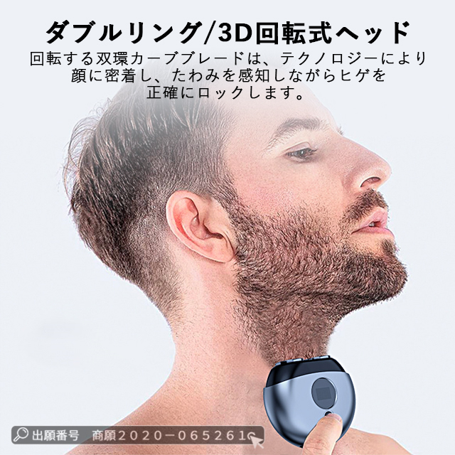 | 【ダブルリング3D回転式ヘッド】 | ◆ミニシェーバーはダブルリング極薄メッシュ刃が搭載され、内刃と外刃がヒゲを挟み込み、逃すことなく確実に深剃りを実現します。また、3Dフローティングヘッドを採用しており、多角度に稼働するヘッドが顔の凹凸に隙間なく密着できます。柔軟性に優れたヘッドが様々な方向に生えるヒゲを逃さず、根本から効率よく捉えて、剃り残しゼロにします。 |