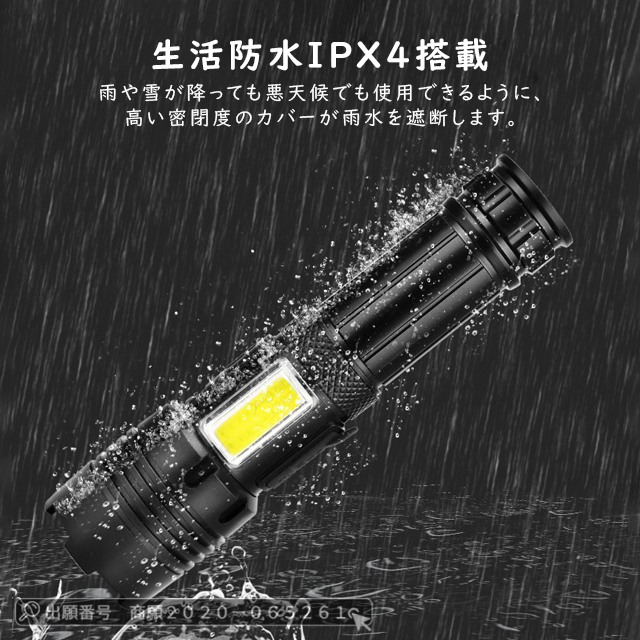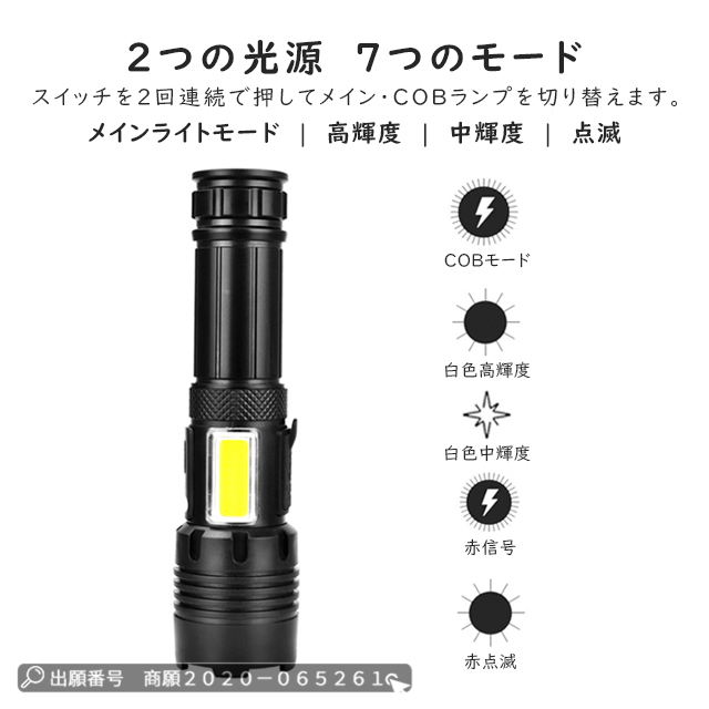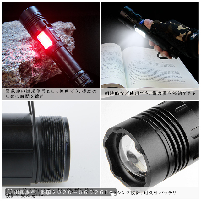 最安挑戦 冬新作 送料無料 新作 懐中電灯 ledライト 小型 軍用 充電式 超高輝度500ルーメン フラッシュライト 軽量 防災 ハンディーライト IPX4防水 地震 停電対策 SOS 緊急用 登山 夜釣り 作業用 18650/26650電池付き