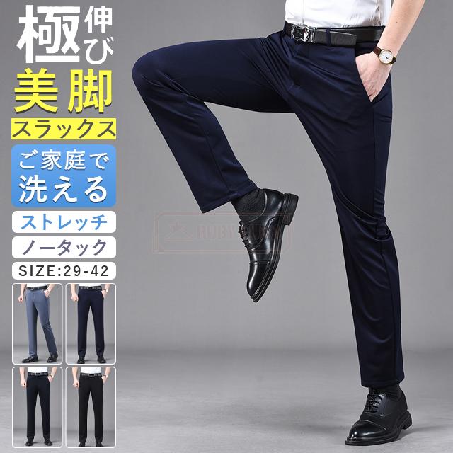 最安挑戦 冬新作 送料無料 新作 スラックス メンズ ボトムス ビジネス ノータックパンツ スリム 無地 ストレッチ ズボン 大きいサイズ 吸水 速乾 紳士服 ズボン 長ズボン 洗濯機OK お洒落 男性用 春夏 クールビズ 涼しい