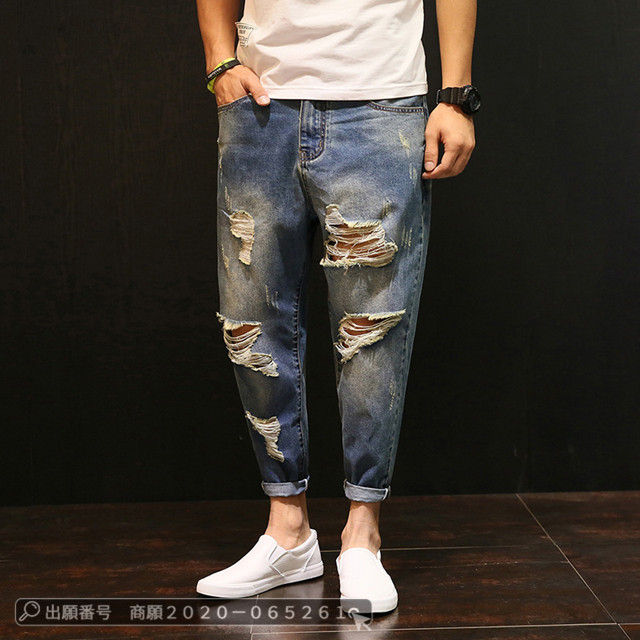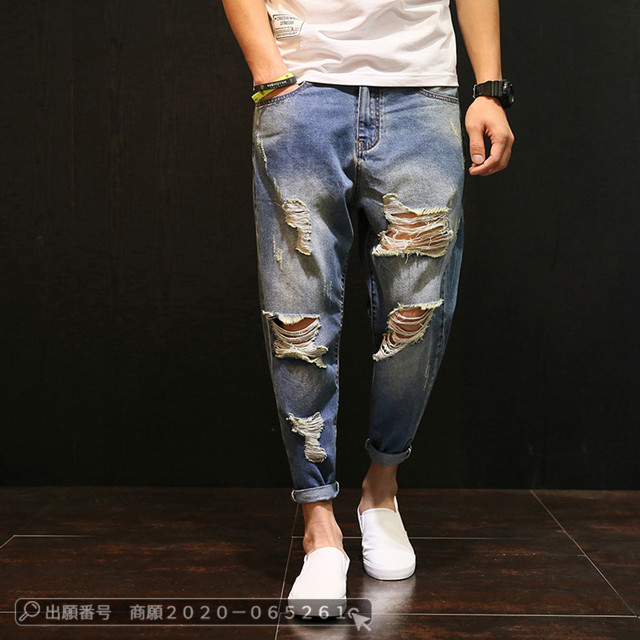 最安挑戦 冬新作 送料無料 新作 ジーンズ メンズ スキニー 9分丈 デニムパンツ カジュアル ダメージ クラッシュ デニム スキニーパンツ 大きいサイズ ブリーチ ブルー ボトムス メンズデニム