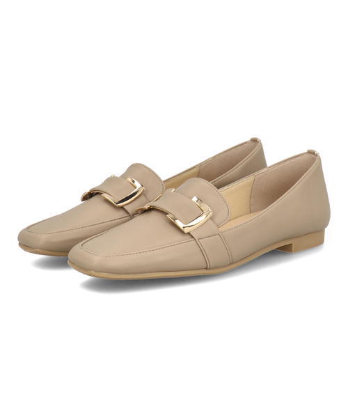 スタイリッシュなスクエアトゥに、ゴールドのメタルモチーフで、エレガントなアクセントをプラスしたローファーパンプス。