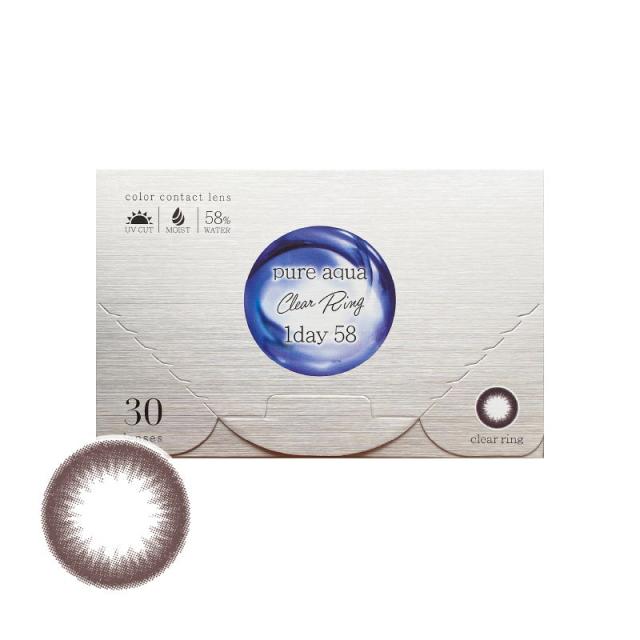 カラコン ピュアアクア クリアリングワンデー by ZERU. (ダークブラウン) 高含水58% UV モイスト 1箱30枚 1日使い捨て Pure aqua clear ring 1day 58 ゼル カラーコンタクト