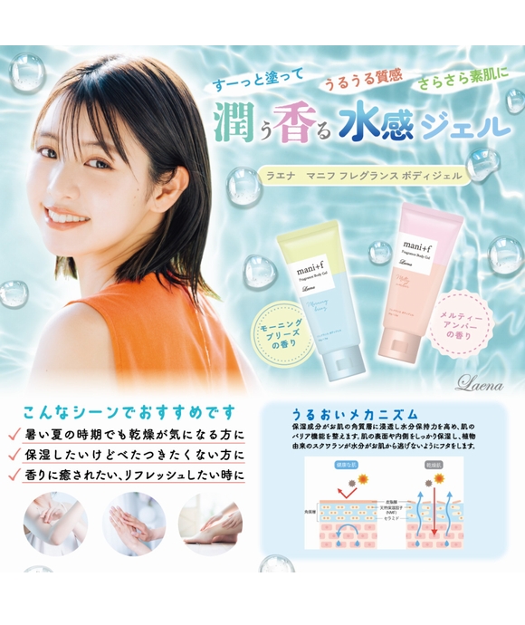 ラエナ マニフ フレグランス ボディジェル 50g MA メルティーアンバー Laena mani+f 日本製 ジェルタイプ 保湿 うるうる質感 サラサラ素肌 みずみずしいジェルタイプ 夏の乾燥が気になる方に。
