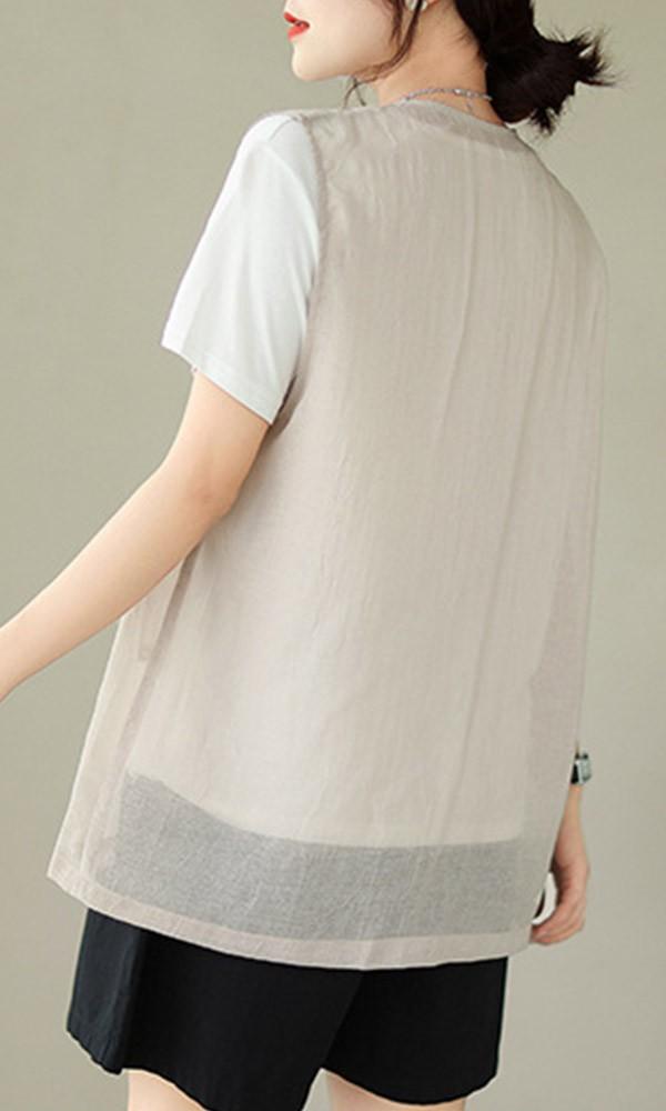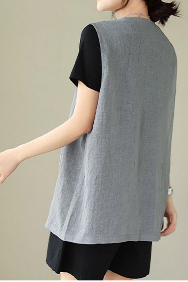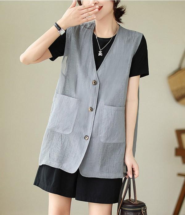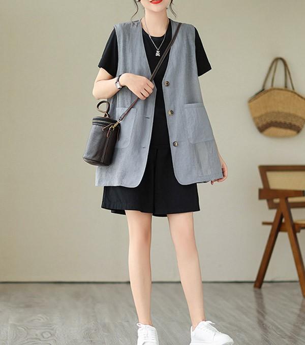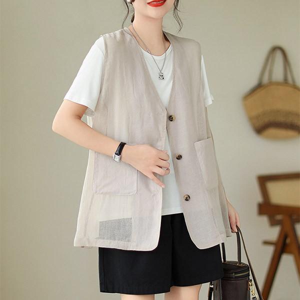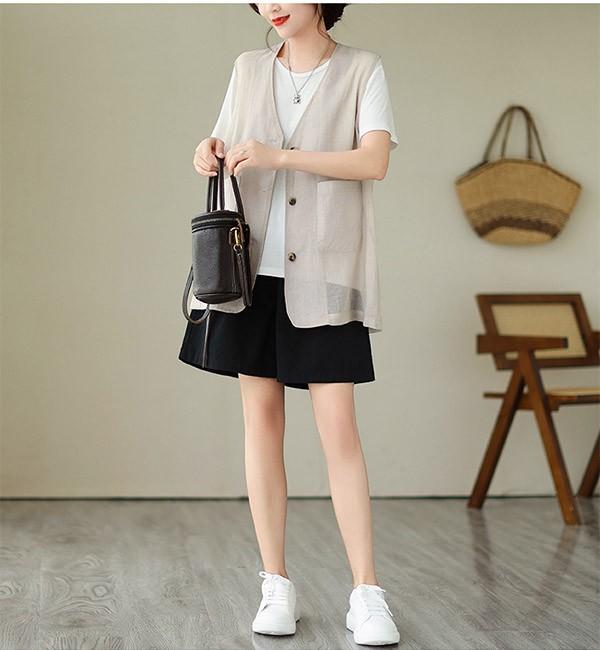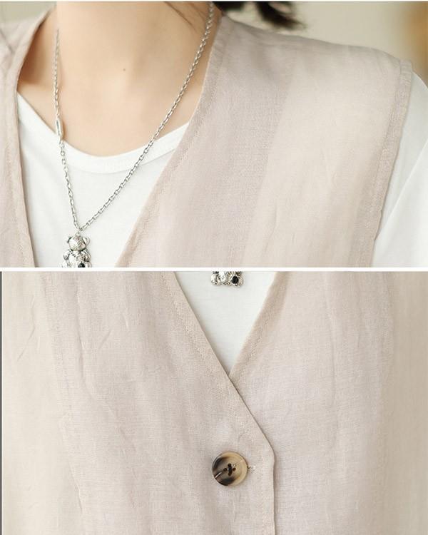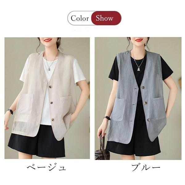 ベスト 春 夏 秋 レディース アウター ノースリーブ 綿麻風 レイヤード 前開き 無地 ショート丈 トップス ゆったり 着回し おしゃれ 20代 30代 40代 L XL 2XLベージュ ブルー dk019sasalc