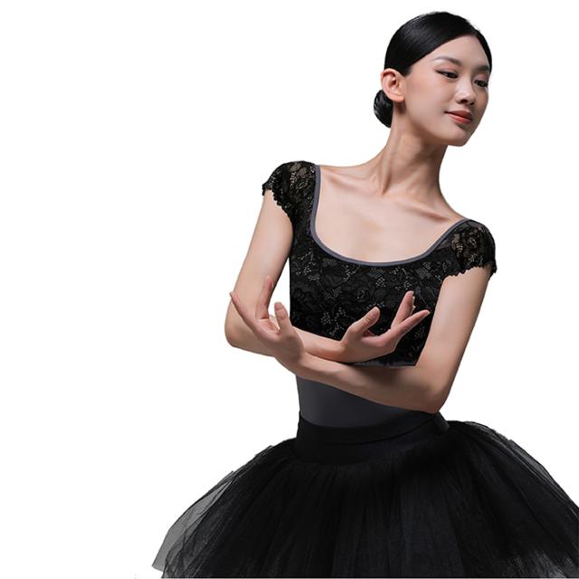 花柄のレースがエレガントなキャップスリーブのレオタードです。