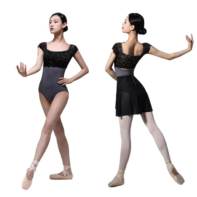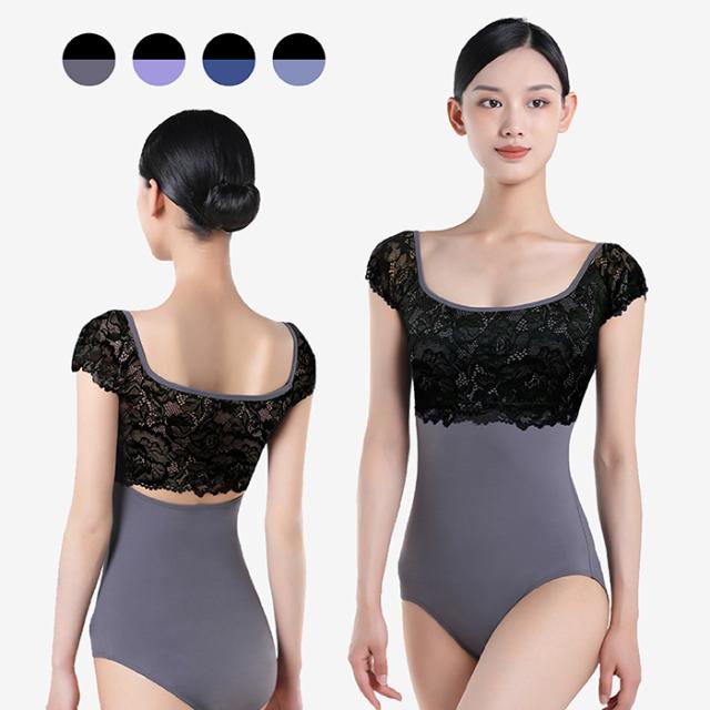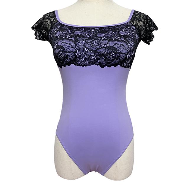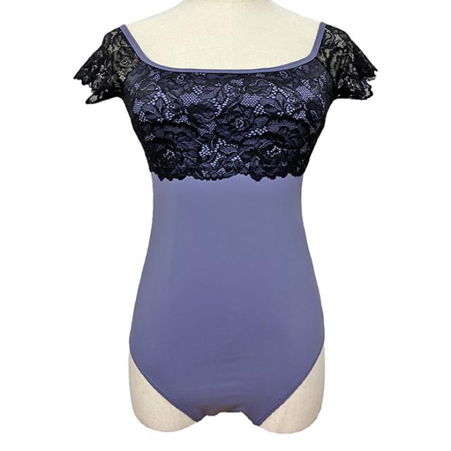 バレエ レオタード キャップスリーブ レースアップ レオタード CKWG07302 バストパッド付き バレエ ジュニア・大人用 おしゃれ ストレッチ 伸縮 花柄 レース 華やか 上品 レッスン 練習 着 バイカラー おとな 紺 紫 グレー パープル ライラック 145 150 155 160 165 170