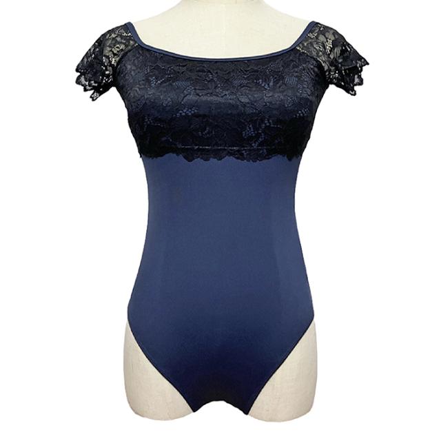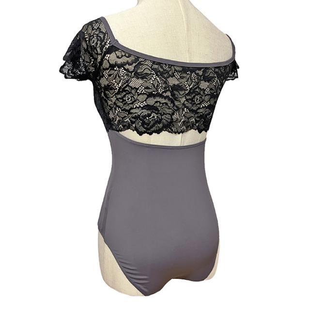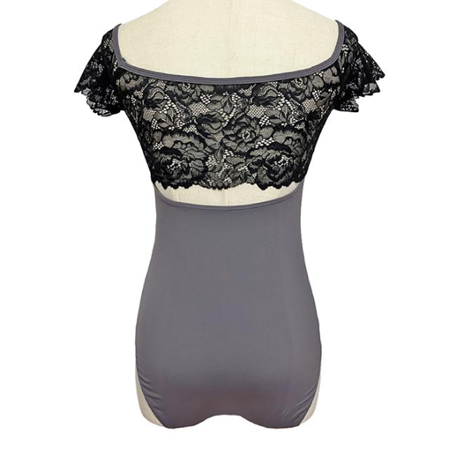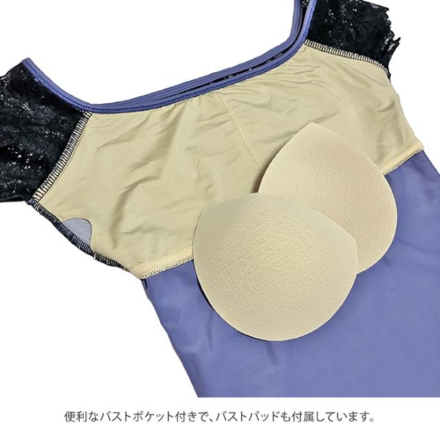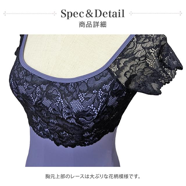 【色サイズ交換無料】しっかりしていてなめらかな生地と、肌触りよく伸縮性の良いレースが上品なレオタードです。背中も丁度良い開き感。便利なバストポケット&パッド付!