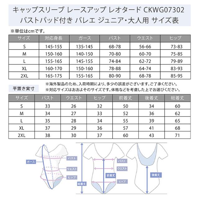 キャップスリーブ レースアップ レオタード CKWG07302 バストポケット付き (バストパッド付き) バレエ ジュニア・大人用