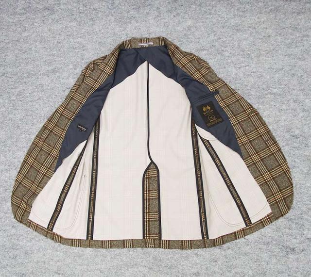 秋冬物 [STANLEY BLACKER] 2釦シングルジャケット スタイリッシュ 茶系/チェック プリント SBK3607-58