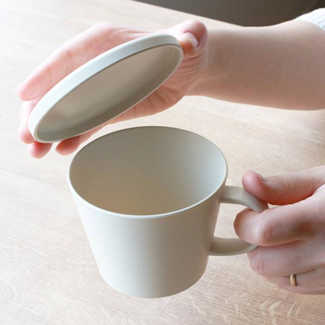 樹脂製で軽くて割れにくく、お子様からシニアまで世代を選ばずに使いやすいマグカップです。ふた付きなのでホコリなどが入りにくく、ご自宅用にはもちろん、オフィスで使うのにもおすすめです。