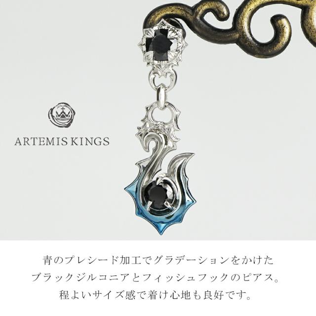 アルテミスキングス ARTEMISKINGS 青彩 フィッシュフック ピアス 1P 片耳用 シルバー 釣り針 ハワイアン モチーフ ブランド ブラックジルコニア