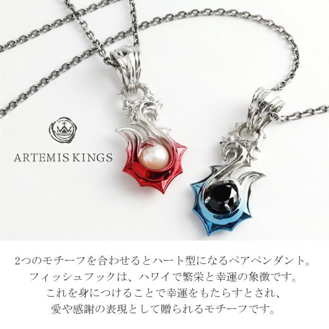 ARTEMIS KINGS アルテミスキングス 青彩 & 赤彩 フィッシュフック ペアネックレス ペア ネックレス ペンダント シルバー 釣り針 ハワイアン モチーフ