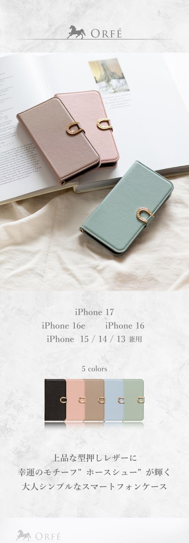 iPhone17 ケース iPhone16e ケース iPhone16 ケース iPhone15 ケース iPhone14 ケース iPhone13 ケース 手帳型 手帳 スマホケース シンプル おしゃれ 大人可愛い 上品 くすみカラー ブラック 黒 ミントグリーン グレージュ ライトブルー ピンク iphoneケース アイフォン 17 16e 16 15 14 13 カバー 幸運 カード収納 蹄鉄 馬蹄 ホースシュー Orfe オルフェ ナチュラルデザイン NATURALdesign