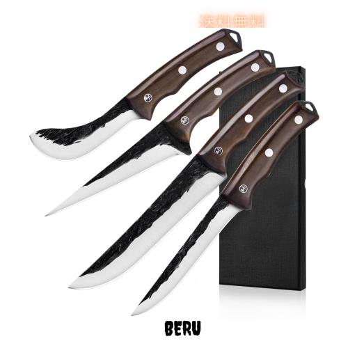 VGTEN 包丁セット 4本 狩猟解体包丁 肉用包丁 骨スキ スライサー 肉切り 皮剥ぎナイフ 手打ち鍛造 フルタング 高炭素鋼 天然ウッドハンド