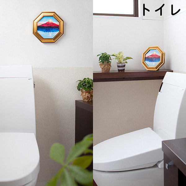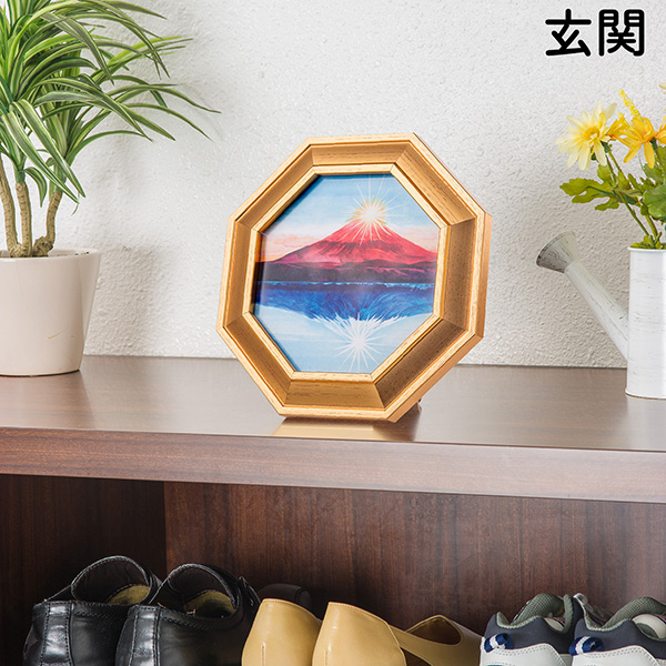 金色に彩られた八角形の額は、財運、厄除、鬼門封じ、健康、開運といったこの絵に秘められた様々なパワーが家の隅々まで、八倍増となって行き渡ることを象徴します。