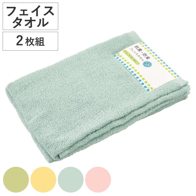 フェイスタオル 抗菌・防臭クレアカラー 34×80cm 2枚組 ( タオル 顔拭きタオル 同色2枚セット 抗菌 防臭 無地 柔らかい 汗拭き 汗拭きタオル 2枚入 バス用品 34×80 ホワイト グリーン イエロー ブルー ピンク )