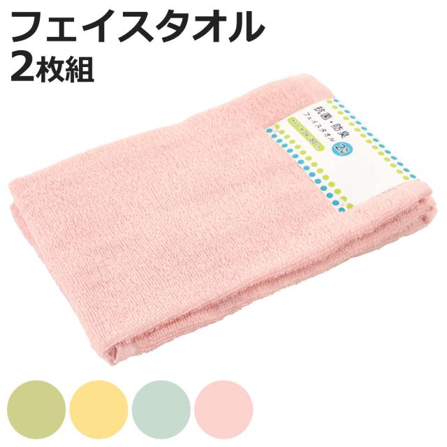フェイスタオル 抗菌・防臭クレアカラー 34×80cm 2枚組 ( タオル 顔拭きタオル 同色2枚セット 抗菌 防臭 無地 柔らかい 汗拭き 汗拭きタオル 2枚入 バス用品 34×80 ホワイト グリーン イエロー ブルー ピンク )