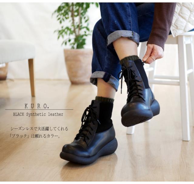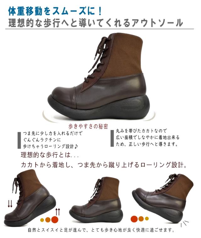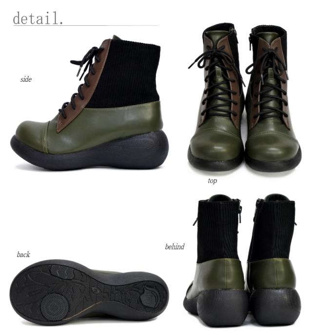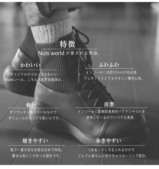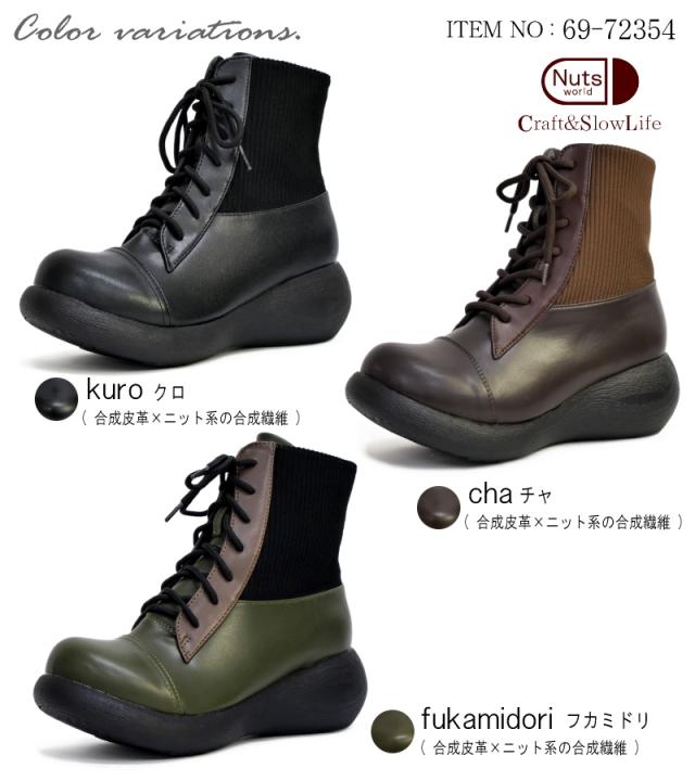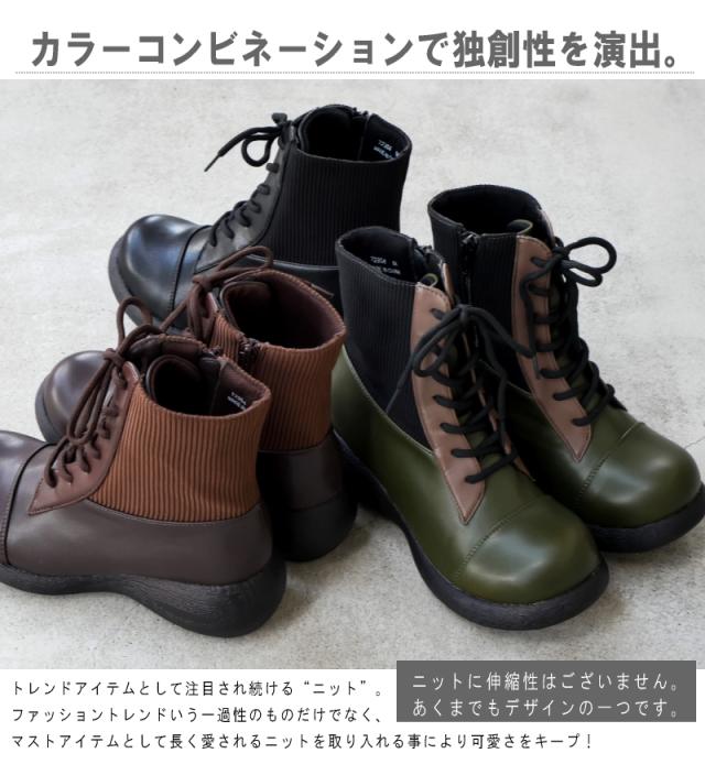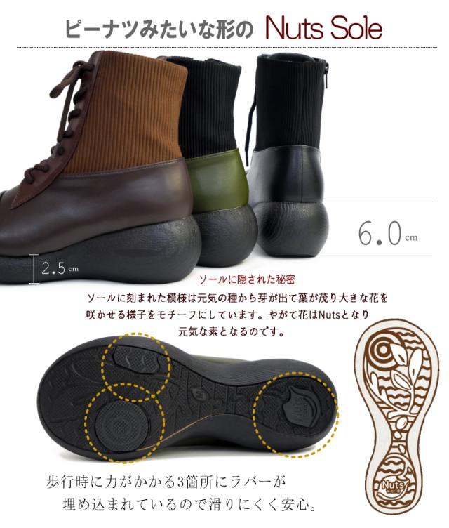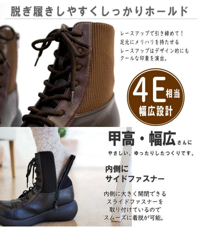 Nuts world ナッツワールド レースアップブーツ ショート丈 厚底 レディース ニット サイドジップ 幅広 4e ローリング ウエッジ 大きいサイズ 低反発クッション