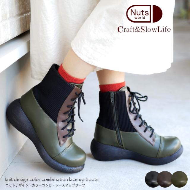 Nuts world ナッツ・ワールド・ナチュカワ・ニットデザイン・レースアップブーツ