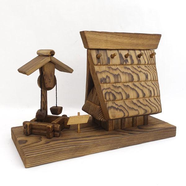 ・詳細 :中古品です。軽く拭き上げしています。水拭きしますと、塗料が落ちますので、ご注意下さませ。井戸の屋根が外れており、接着で付けた跡があります。経年劣化があります。木製でできた、昭和レトロな家で、インテリアにいかがですか。 サイズ:約26.5x11.8x18cm