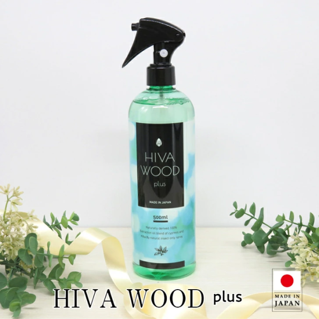 青森県産のヒバの木からわずかしか抽出することが出来ないヒノキチオールを主成分として、虫が嫌がるハッカエキスが配合されたヒバウッドプラスはさらに高い害虫忌避効果を発揮します。