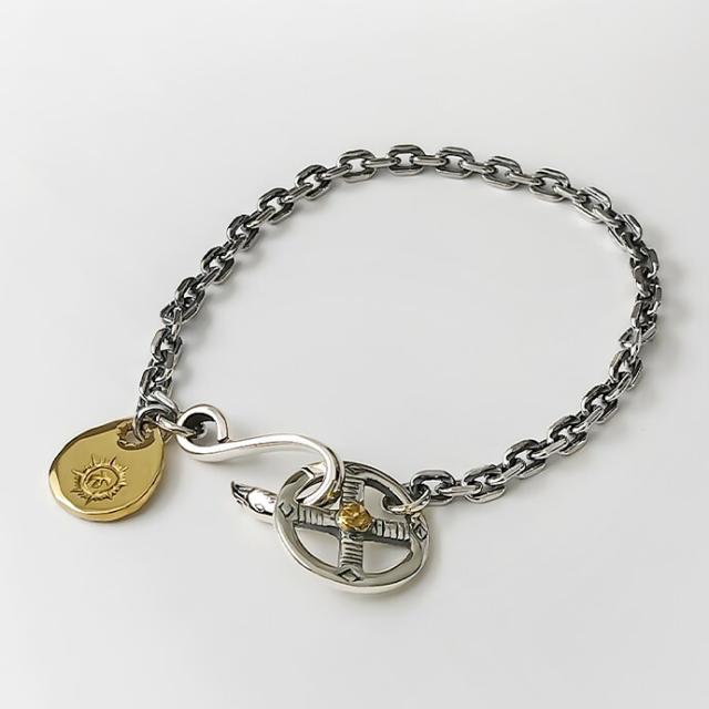 イーグルフックとメディスンホイール、イーグルメタルを組み合わせたネイティブ系チェーンブレスレット。