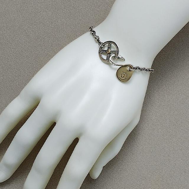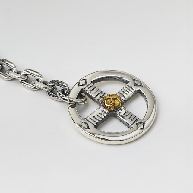 | サイズ | 全長:約19.5cm(ホイール・フック含む)、内周:約18cm チェーン幅:約4mm、厚み:約1mm メディスンホイール直径:約17mm、イーグルメタル縦:約15mm、横:約12.5mm 重量:約11g |