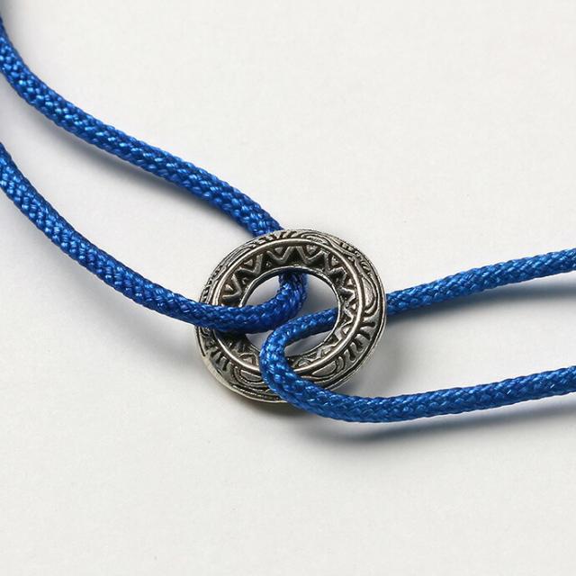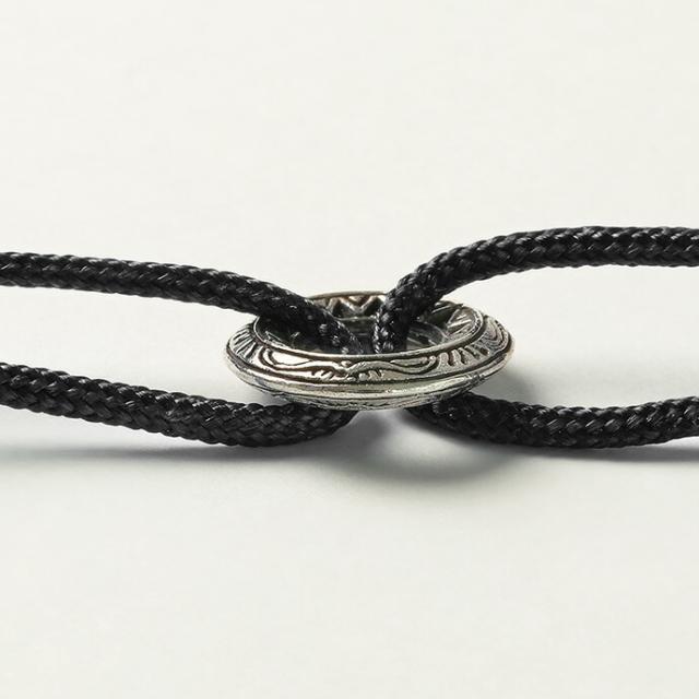 ネイティブ柄が入ったシルバー925製リングチャームがアクセントの、シンプルなカラーコードアンクレットです。アンクレットは結び目を押さえてコードを引っ張ることで、サイズ調節が可能。 鮮やかなカラーリングとアンクレット中心部のチャームが、足元にカジュアルな雰囲気をプラスします。
