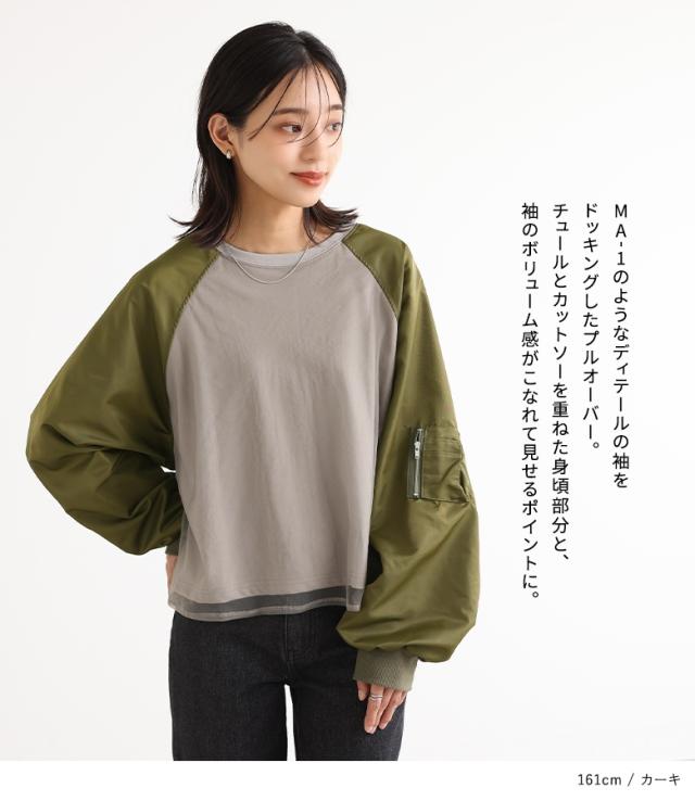 プルオーバー レディース トップス カットソー チュール 長袖 長袖トップス ロンT ボリューム袖 異素材 切替 【TP】 Tシャツ クルーネック Uネック n'OrLABEL ノア—ルレーベル 大人女子 大人可愛い お洒落可愛い 大人カジュアル ベーシック ニュアンス ラフ エフォートレス オフィスカジュアル 七分袖 ぽわん袖 ショート丈 ミディ丈 ミドル丈 ゆったり ゆるっと ビッグシルエット オーバーサイズ 切り替え 無地 異素材MIX シアー 透け感 おうちで洗える 春 秋 冬 ミリタリー カジュアル モード 可愛い系 かっこいい Sサイズ Mサイズ Lサイズ LLサイズ 3Lサイズ XLサイズ フリーサイズ ぽっちゃり 体型カバー 大きいサイズ プラスサイズ 10代 20代 30代 40代 50代 60代 低身長 高身長 女子会 オフィス 通勤 通学 お買い物 お出掛け 旅行 リゾート レジャー おしゃれ お洒落 トレンド 流行 デート ショッピング 散歩 osharewalker オシャレウォーカー おしゃれうぉーかー グリーン 緑 カーキ ブラック 黒[ID]13tm0fz[MA-1スリーブトップス]