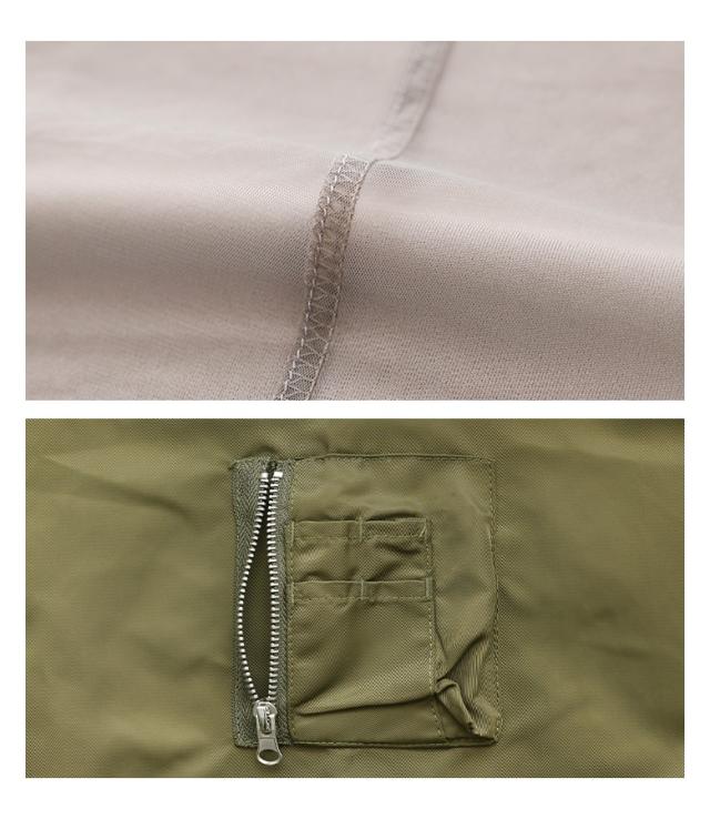 ■デザイン MA-1のようなディテールの袖をドッキングした、デザインスリーブのプルオーバー。身頃部分はチュールとカットソーの2枚重ねで、トレンド感たっぷりな異素材使いです。袖のボリューム感がこなれて見せるポイントに。 ■コーディネート きれいめなボトムスと合わせてバランス良く決まり、カジュアルなアイテムとも好相性です。 ■素材 身頃はさらりとした肌触りの良いカットソーに、透け感のあるチュールをレイヤードした生地。袖はハリ感と密度のあるナイロン生地を使用しました。 |