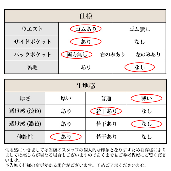 Sサイズ:ウエスト66-70/総丈78 Mサイズ:ウエスト72-76/総丈79 Lサイズ:ウエスト80-84/総丈80 XLサイズ:ウエスト87-91/総丈81 XXLサイズ:ウエスト94-100/総丈82 |
