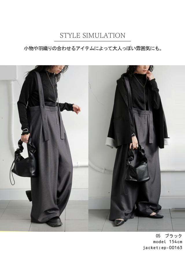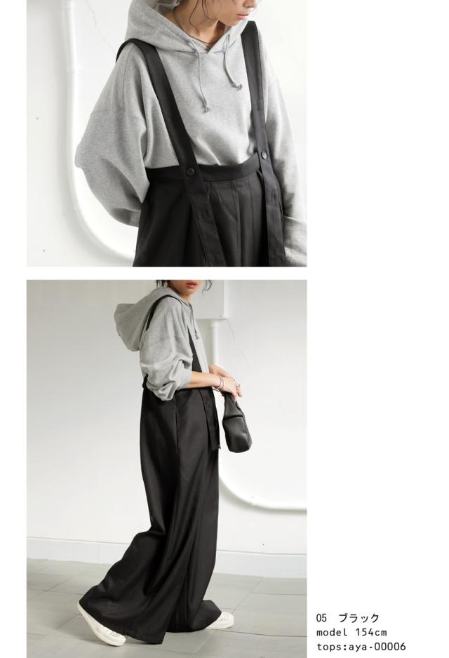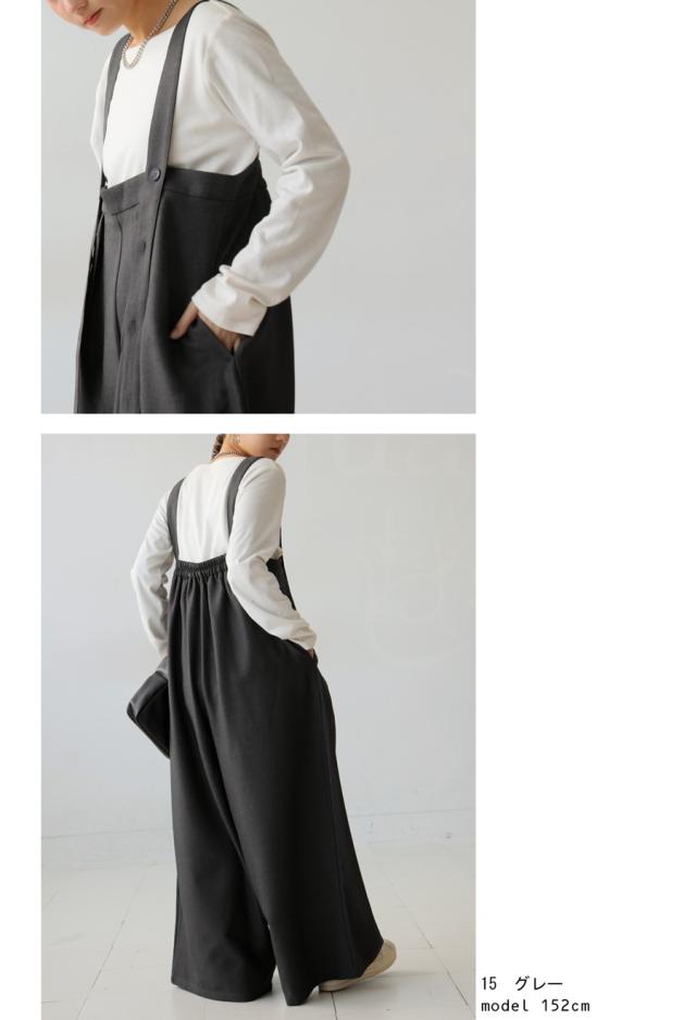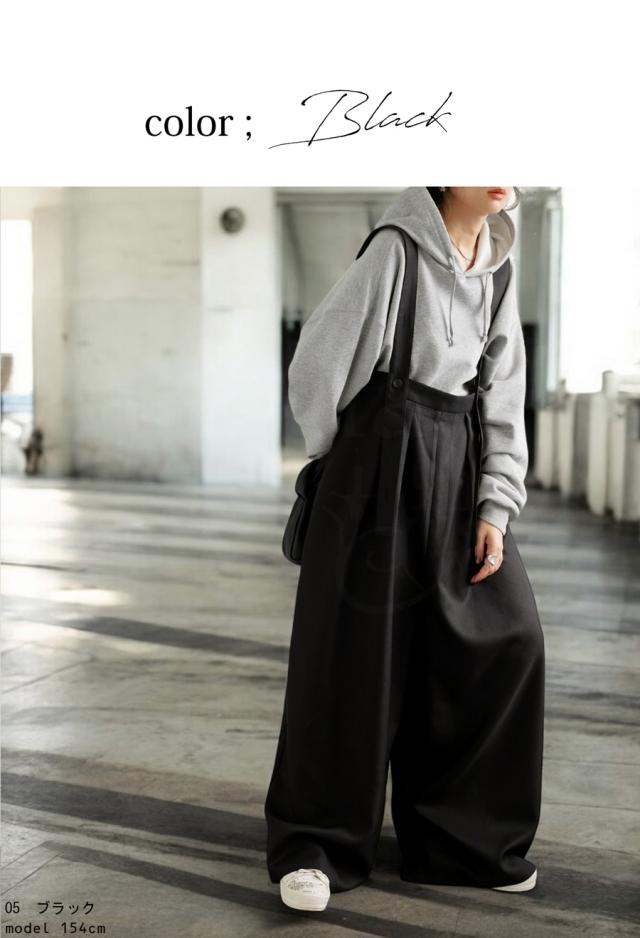 pk-01245 ロング 長ズボン ノースリーブ 肩紐調節可 無地 ワイド ポケット付き ゆったり シンプル きれいめ 体型カバー 着痩せ 大きめ サロペットパンツ オーバーオール オールインワン