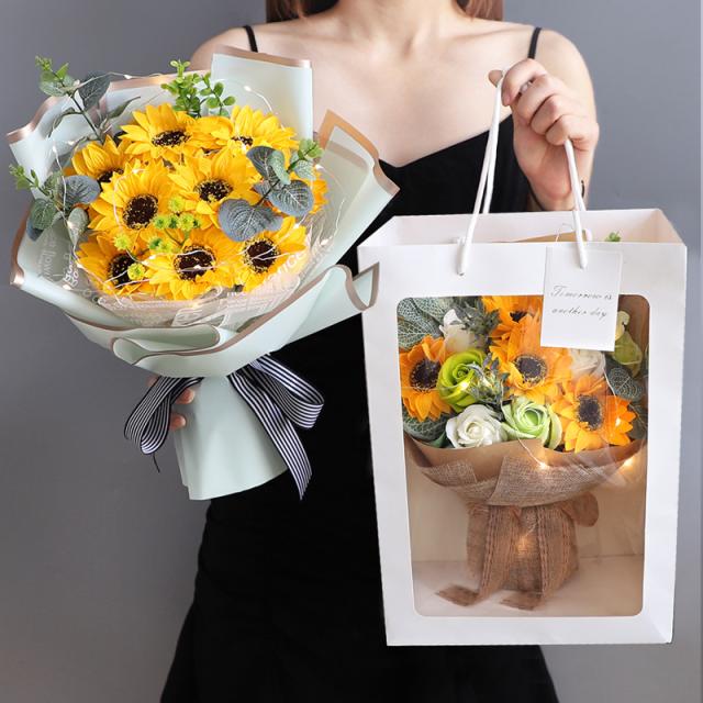 敬老の日 敬老の日ギフト ソープフラワー 誕生日 誕生日プレゼント発表会 ひまわり 造花 退職 感謝 ギフトブーケ バラ 造花 枯れない花 卒業