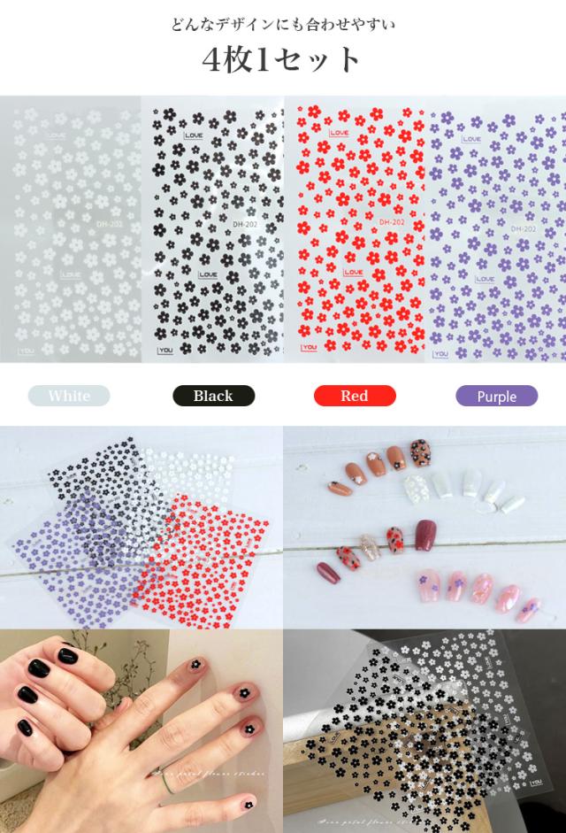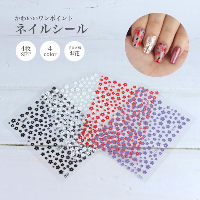 ネイルシール 花柄 パーツ ネイル デザインシール 4枚セットネイルパーツ ニュアンスネイル プチプラ 簡単 かわいい 薄 シール 花