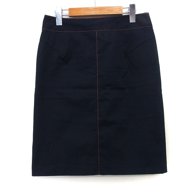【中古】エル ELLE 台形 スカート 膝丈 シンプル ステッチ コットン 綿 40 ブラック 黒 /HT15 レディース