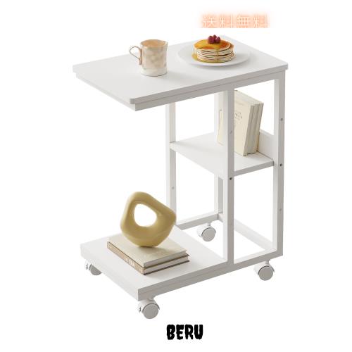 【コ字型テーブル】サイドテーブル キャスター付きはコ字型、ソファやベッドの下のスペースに入れ、隙間に差し込んでも使えます。ソファのサイドテーブルやリビングのサイドテーブルとしても使えます。
