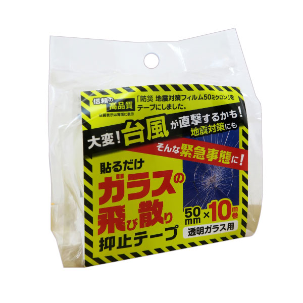 地震対策 ガラスの飛散防止 メーカー直営店 台風対策 暴風対策 無色透明 飛来物対策 飛散防止 テープ ガラスの飛び散り 抑止 5cm×10m巻 HGS055010