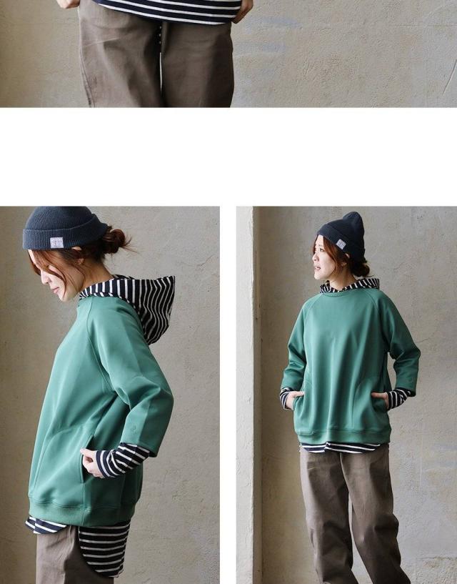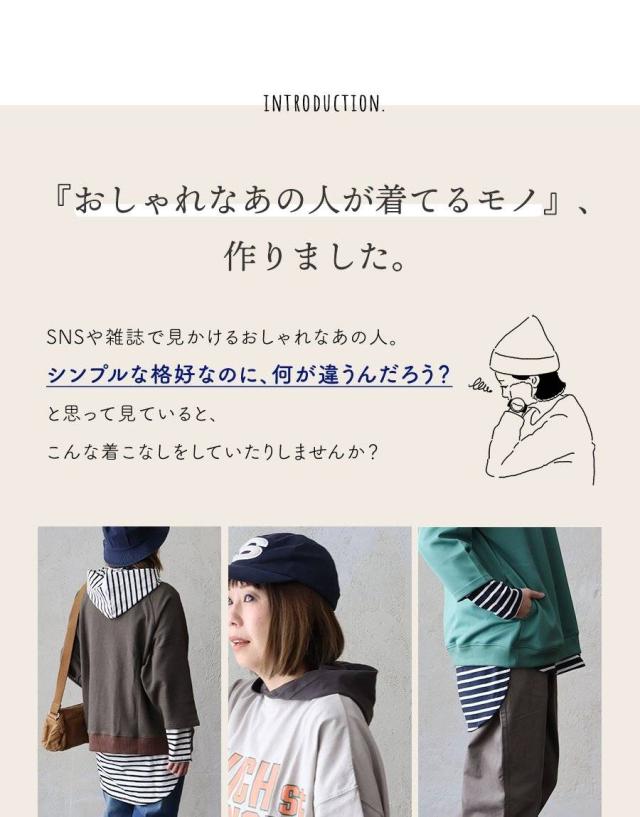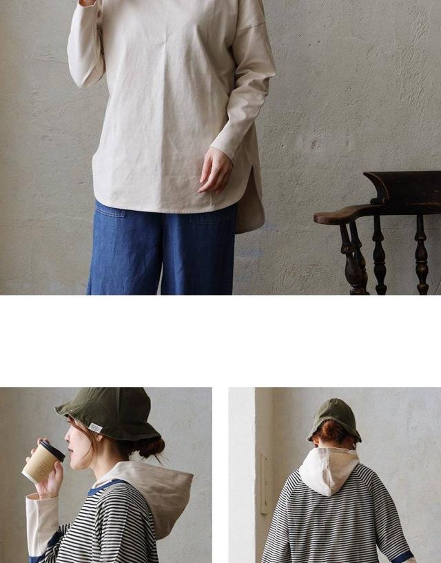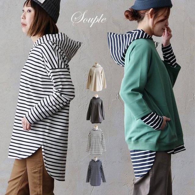 【メール便50】 カットソー パーカー 長袖 重ね着 インナー おしゃれ ロング丈 お尻 カバー 薄手 軽い 綿100% コットン プルオーバー ラウンドヘム レディース トップス カジュアル パティ Souple スプル