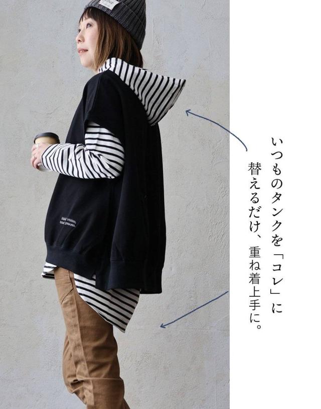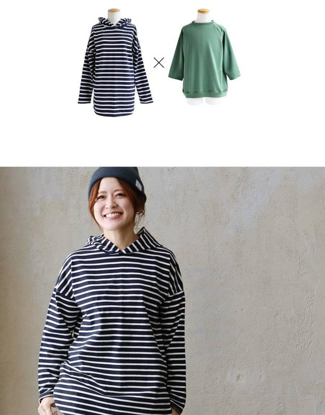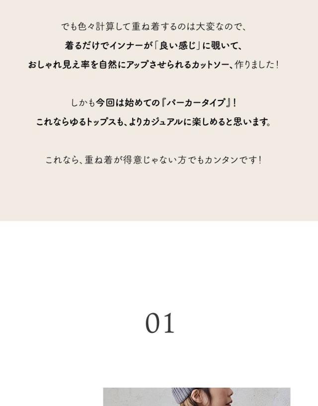 ・カジュアルなパーカータイプ×手首が隠れる長袖。