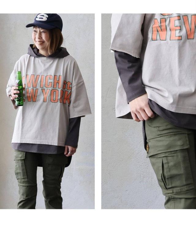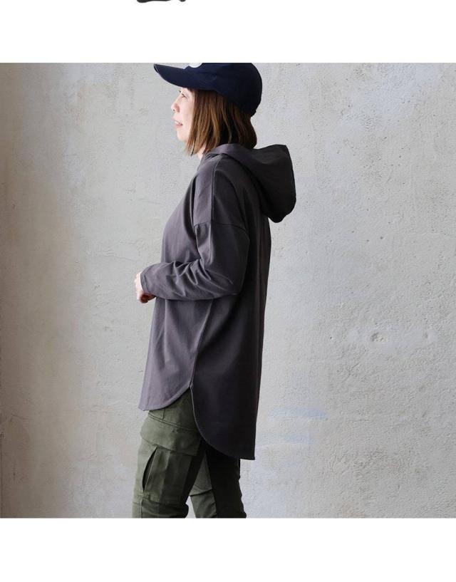 カットソー パーカー 長袖 重ね着 インナー おしゃれ ロング丈 お尻 カバー 薄手 軽い 綿100% コットン プルオーバー ラウンドヘム レディース トップス カジュアル パティ