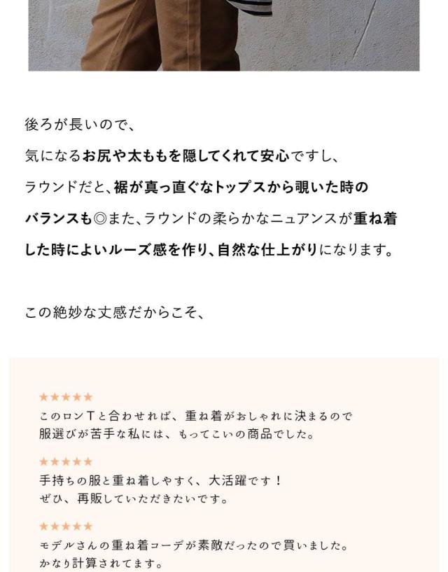 ・お尻がすっぽり隠れる「前後アシメントリー」のラウンドヘムロング丈。