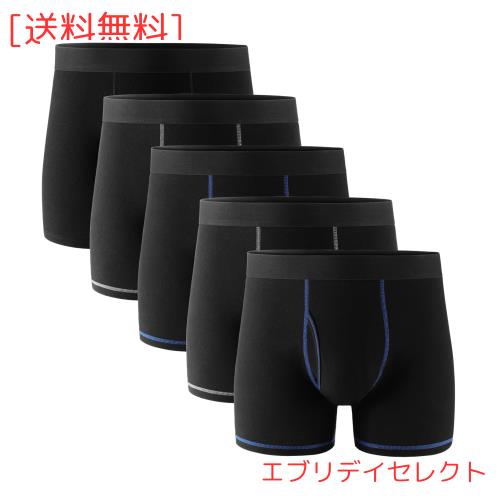 [POPKOK] [ポップコー]ボクサーパンツ メンズ 前開き ボクサーブリーフ 5枚 セット コットン 下着 男性 ボクサー 大きいサイズ(ブラッ