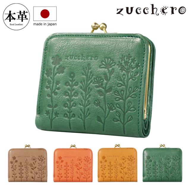 【レビュー投稿で+5%還元】ズッケロ 二つ折り財布 がま口 レディース 日本製 55431 zucchero|折財布 コンパクト 本革 レザー ボックス型 ウォレット 花柄 植物柄 ボタニカル 可愛い おしゃれ