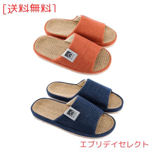 [SLITA] スリッパ リネン 亜麻 ルームシューズ 前開き 厚底 涼感 室内スリッパ 来客用 軽量 静音 滑り止め 春夏秋 男女兼用 洗濯可 4足セ