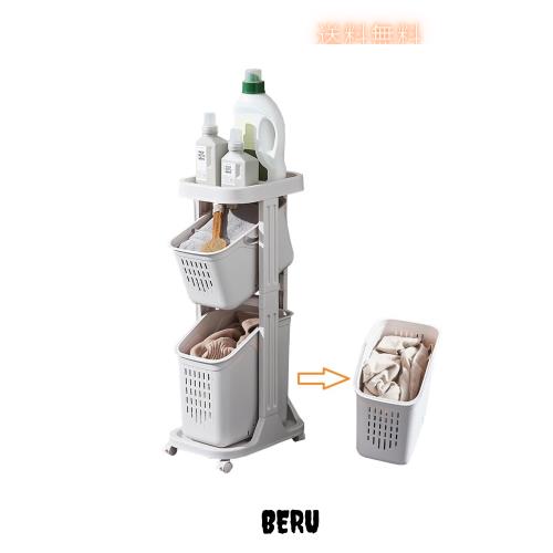 ◆商品名:seacallランドリーバスケット 3段 隙間収納 ランドリーバスケットランドリーラック簡単な組み立て 洗濯籠 ノルディック ランドリー 収納
